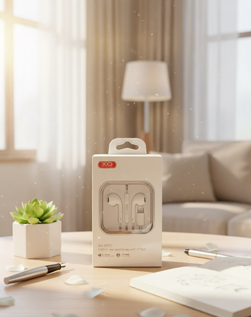 Experience pristine sound quality with the XO-EP70 Music Earphones, designed exclusively for Apple devices with an iP/Lightning Port. Following the philosophy of "Simple Is Beauty," these wired earbuds offer a flawless blend of professional audio and elegant design.